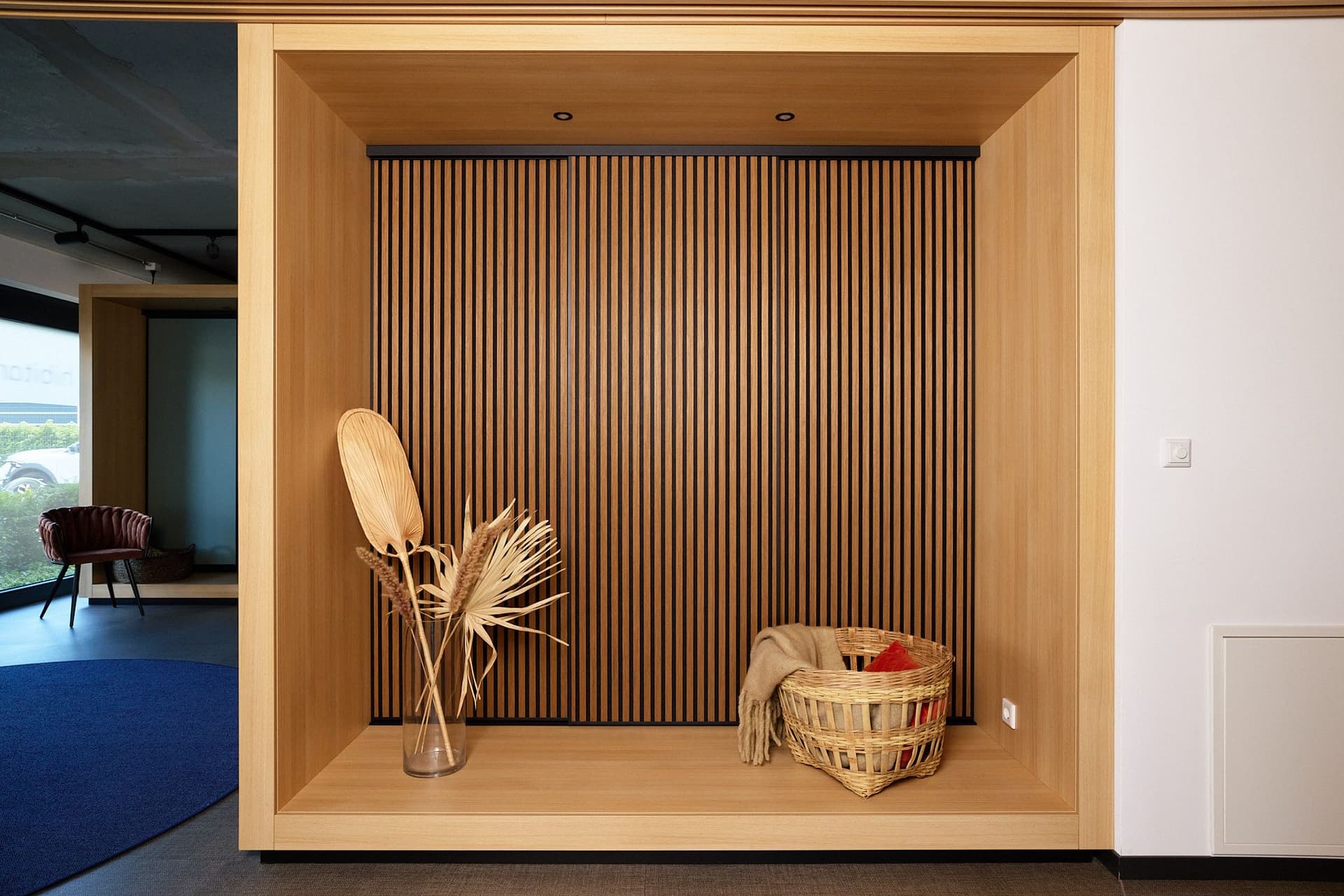 Vielfältige Materialien – Glas, Holz, Akustiklamellen und mehr