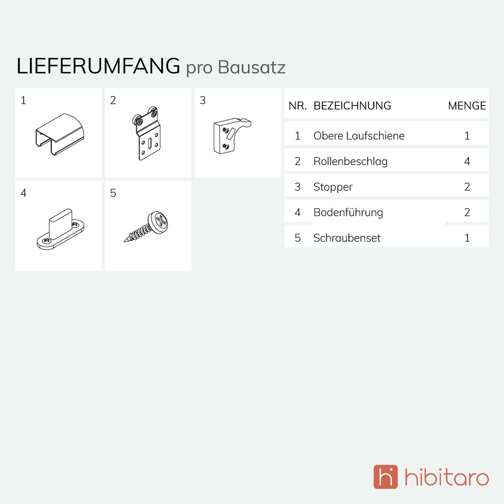 Bausatzart | Inkl. Schiene und Rollen (Ohne Türfüllung - Kann im Zubehör dazu bestellt werden) |