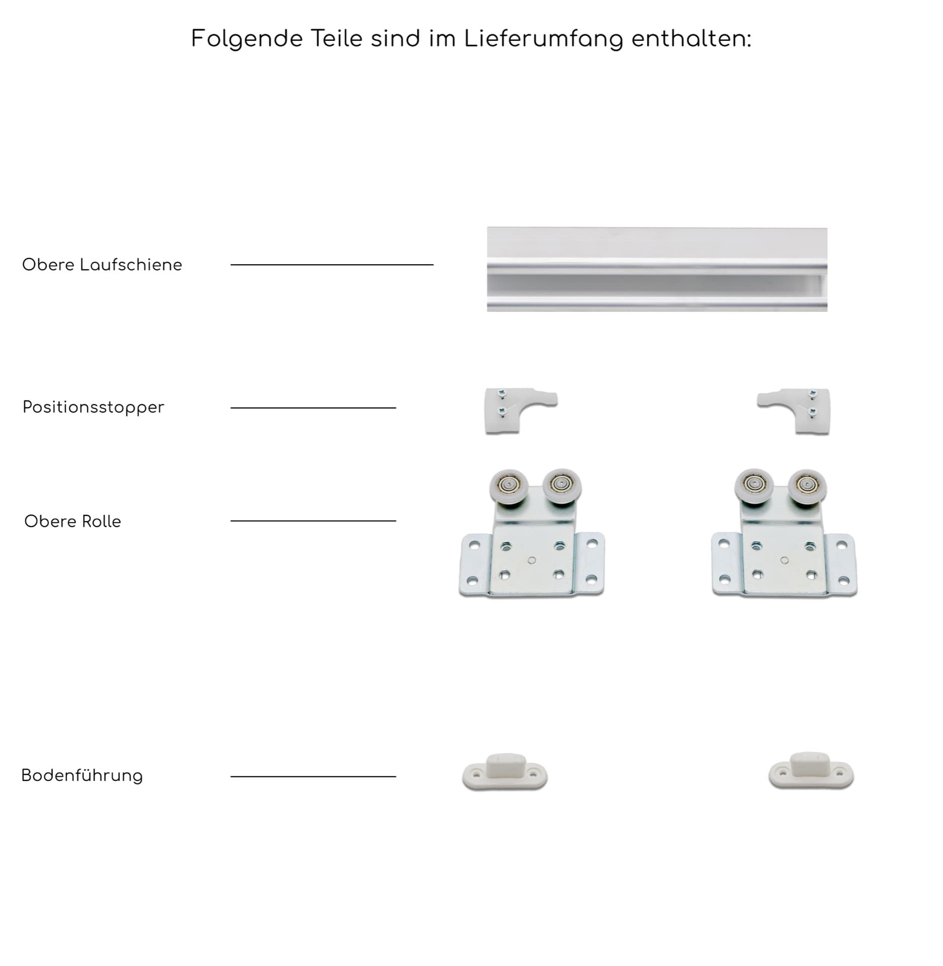 Inkl. Rollen für 2 Flügel und Schienen in 2 Meter
