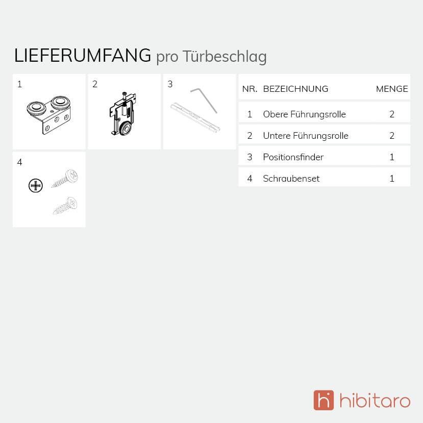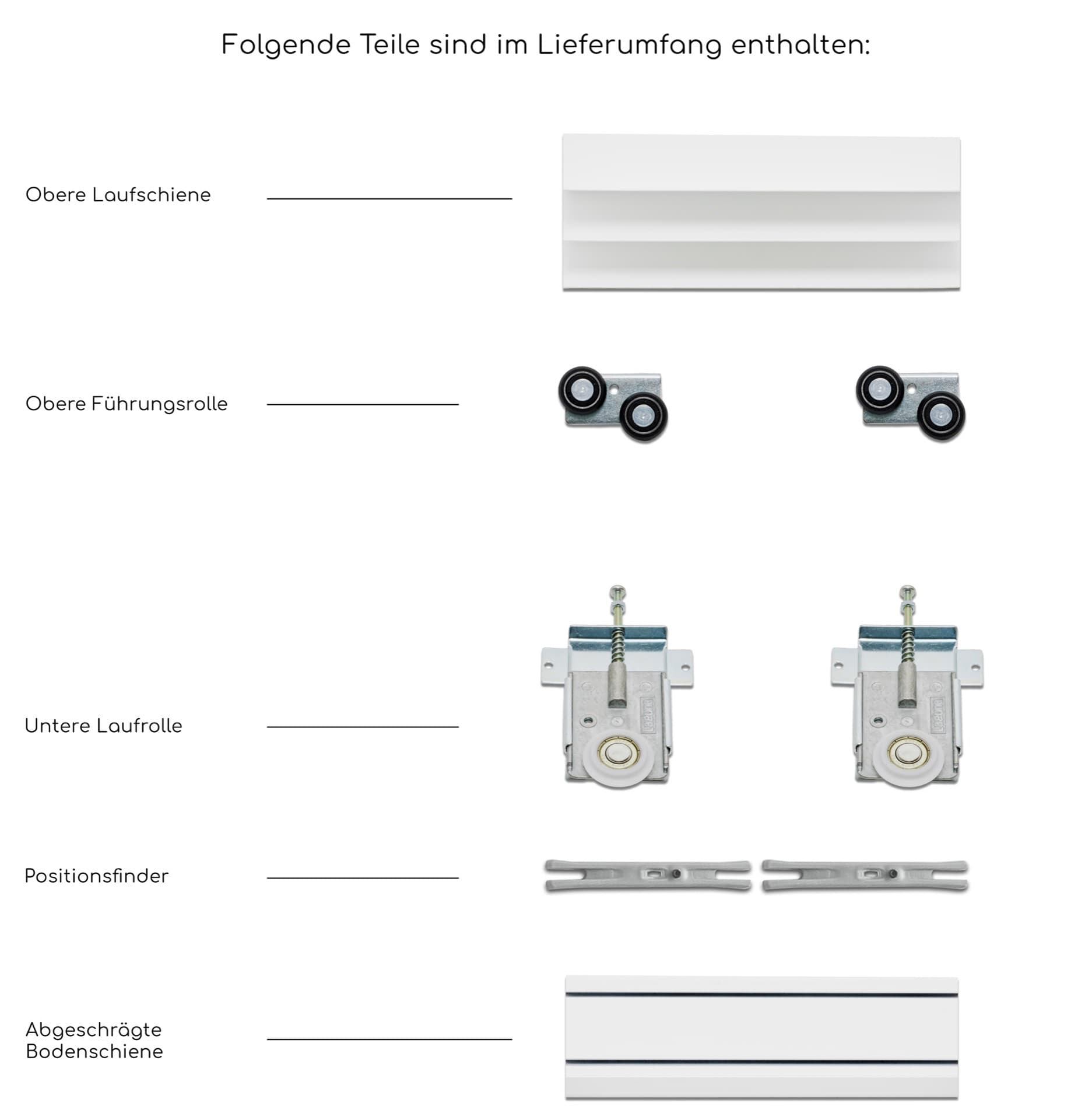 Sie erhalten hier die Laufschienen und die Rollenbeschläge inkl. Positionsfinder.