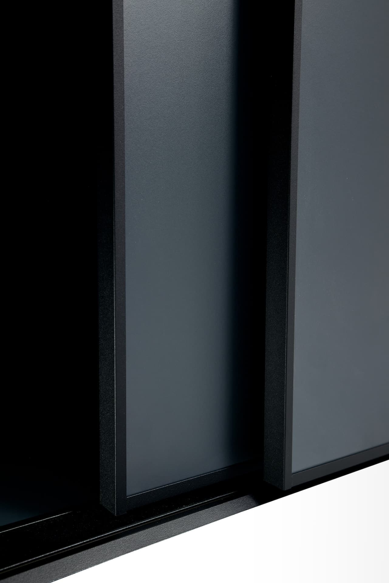 Onyxgraue Holzschiebetüren mit schwarzen U-Profilen