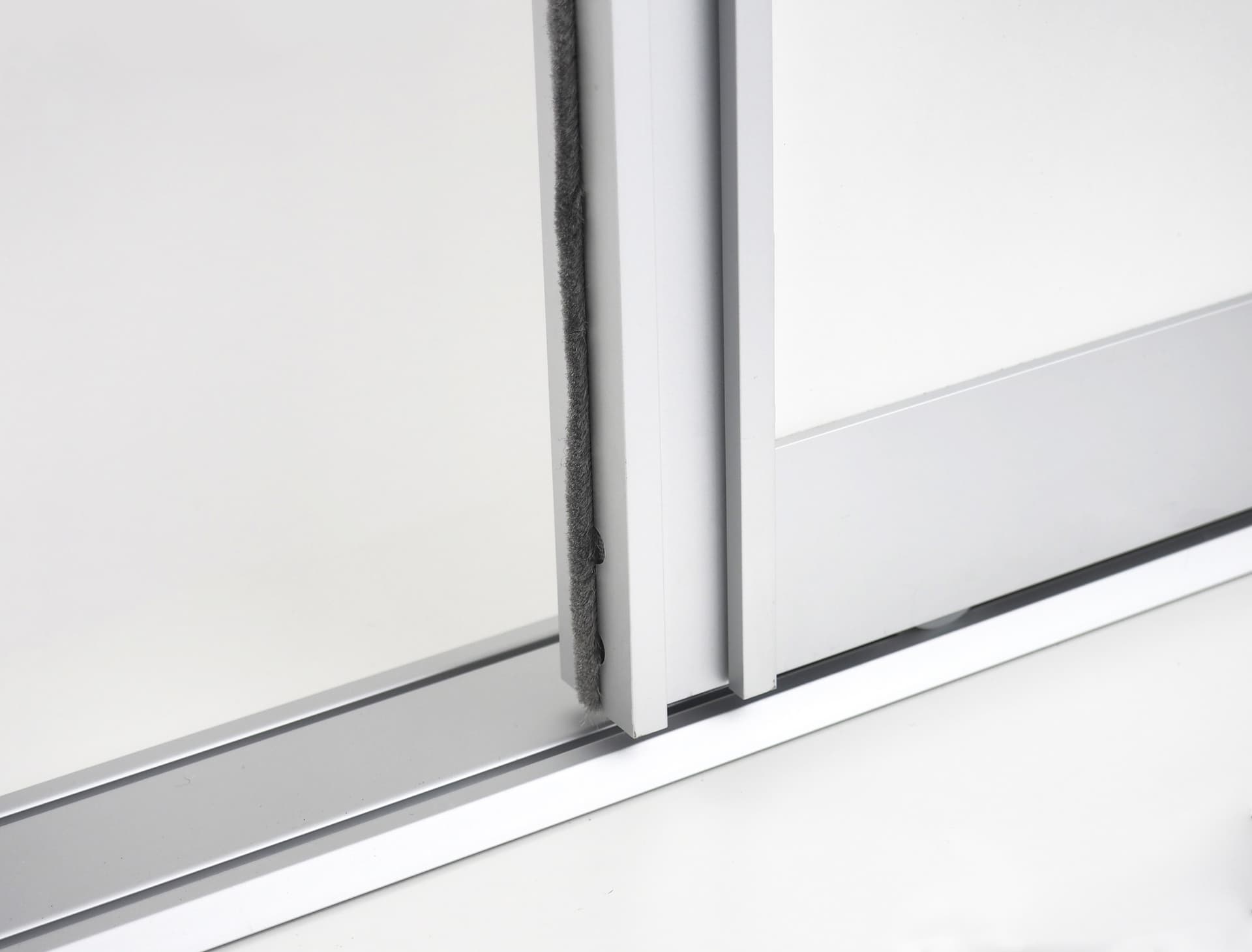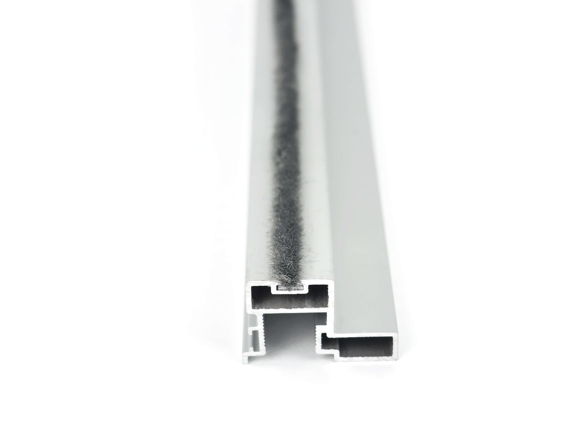 Die Anschlagbürste kann in das Profil eingeschoben werden und funktioniert als Puffer zur Wand. Die Bürste ist ca. 5 mm stark.